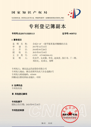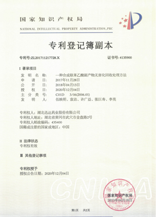 湖北迅達藥業(yè)股份有限公司是專業(yè)從事醫(yī)藥原料藥及中間體生產(chǎn)經(jīng)營的國家重點高新技術(shù)企業(yè),也是國家 4A 標(biāo)準(zhǔn)化良好行為企業(yè)、湖北省智能制造試點示范企業(yè)、湖北省國際科技合作基地、湖北省信息化與工業(yè)化融合試點示范企業(yè)、湖北省創(chuàng)新型企業(yè)、湖北省上市后備“金種子”企業(yè)、省級“專精特新”企業(yè)、上云標(biāo)桿企業(yè)。公司被評為湖北省醫(yī)藥工業(yè)五十強、湖北省醫(yī)藥行業(yè)創(chuàng)新型企業(yè)十強、湖北省醫(yī)藥行業(yè)出口型企業(yè)十強、湖北省優(yōu)秀企業(yè)、湖北省“重合同守信用”企業(yè)、湖北省模范勞動關(guān)系和諧企業(yè)、湖北知識產(chǎn)權(quán)示范企業(yè)、中國外貿(mào)出口先導(dǎo)指數(shù)樣本企業(yè)。